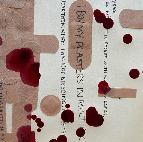 I created this piece as a form of catharsis where I can get down my ideas surrounding growing up. Plasters remind me of being small and vulnerable and my photos I titled ‘dissociation’ led me to this idea. I layered plasters then wrote things I associate with them. I filmed the piece as if I was the viewer reading it to guide them through it.